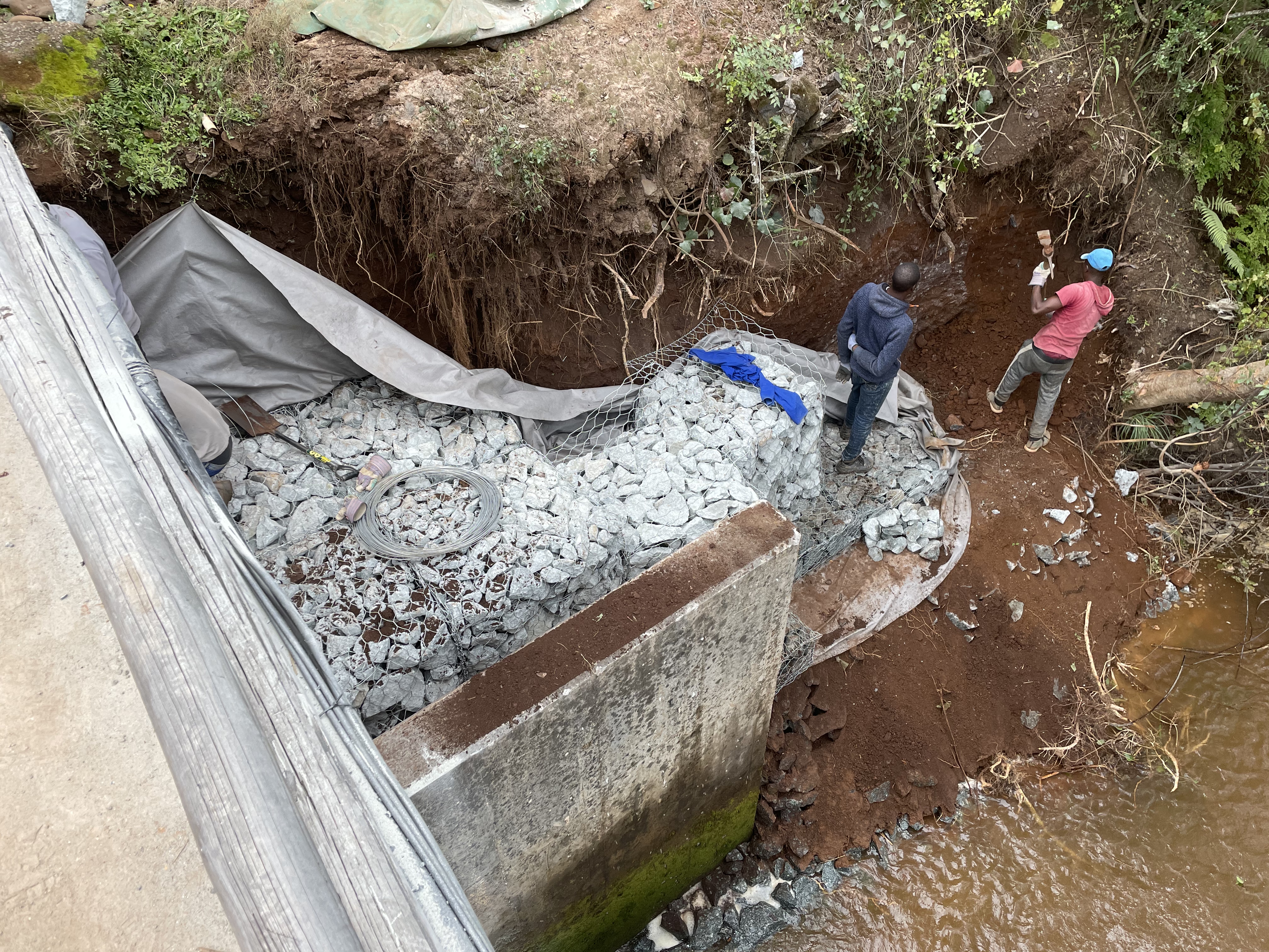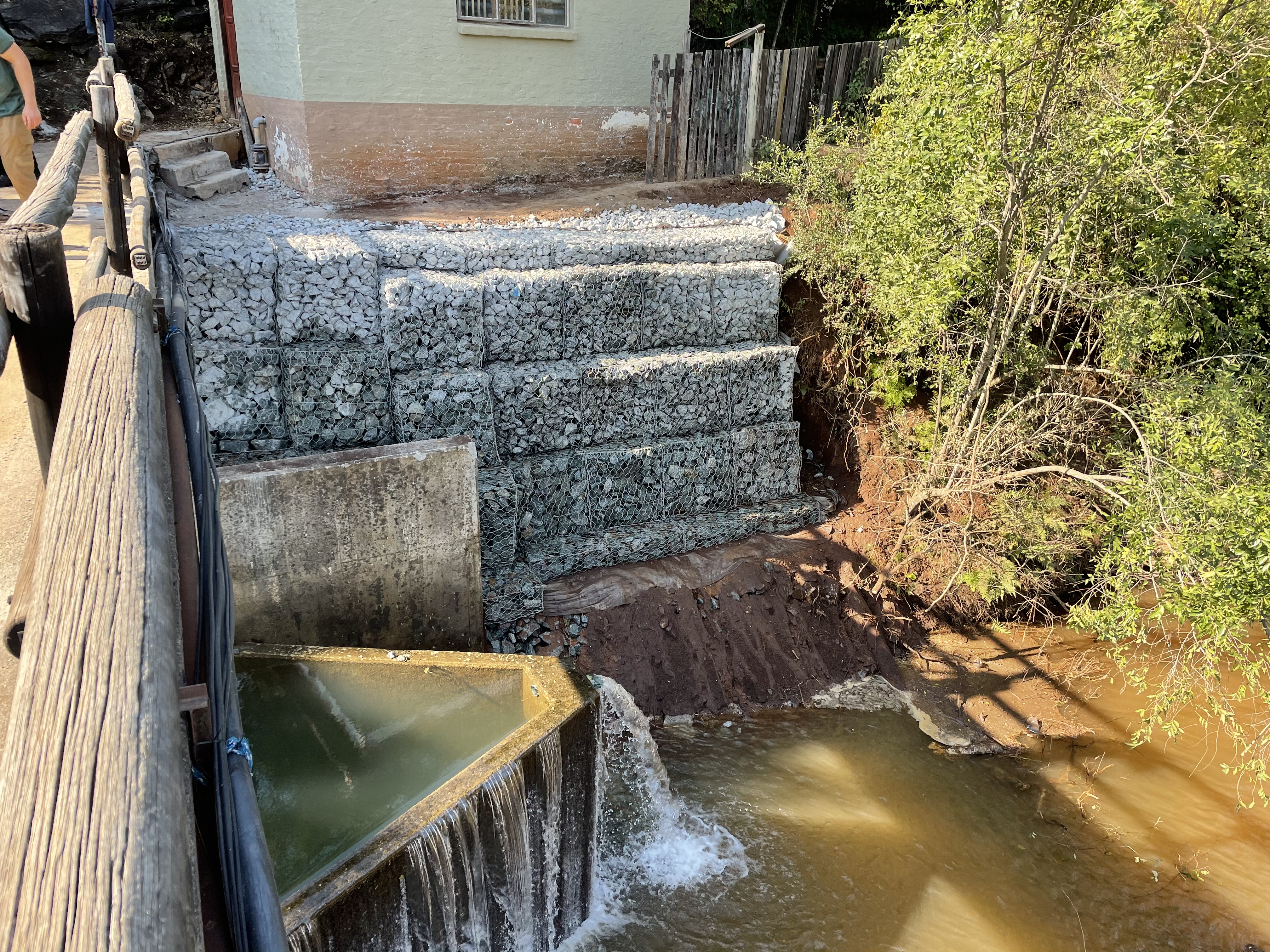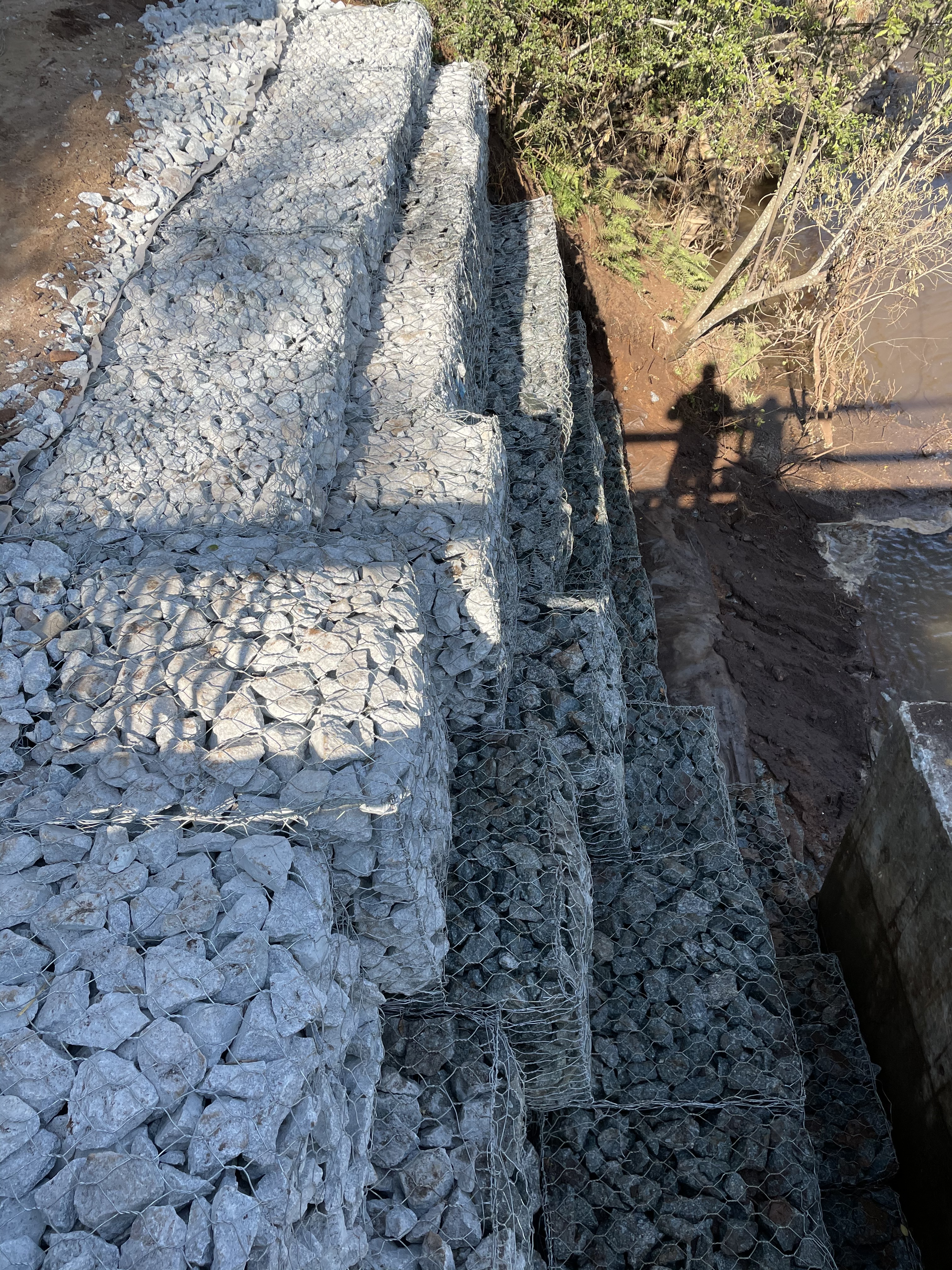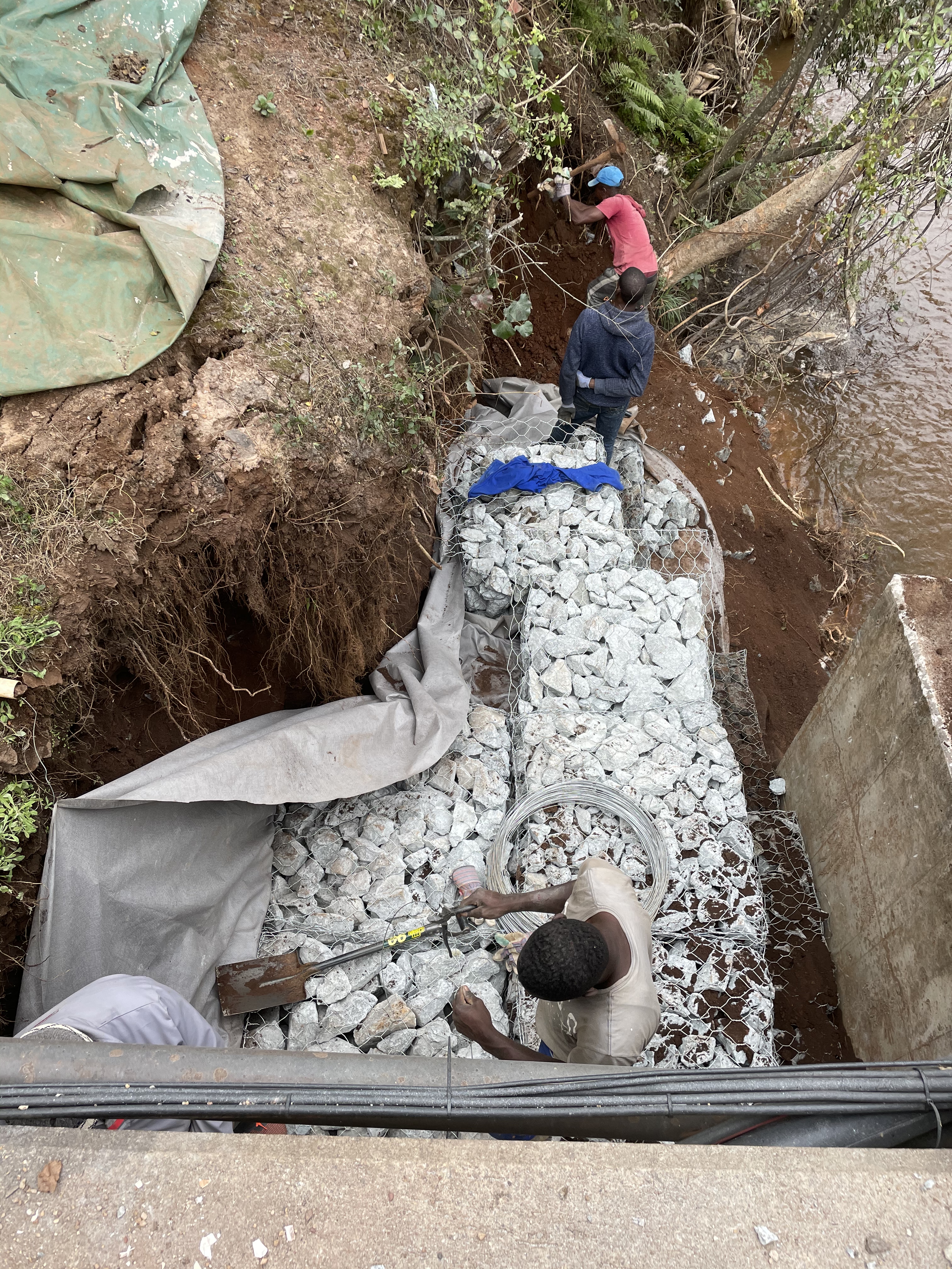 We built this gabion wall to save a pump station from being swept away during floods in the rain seasons.